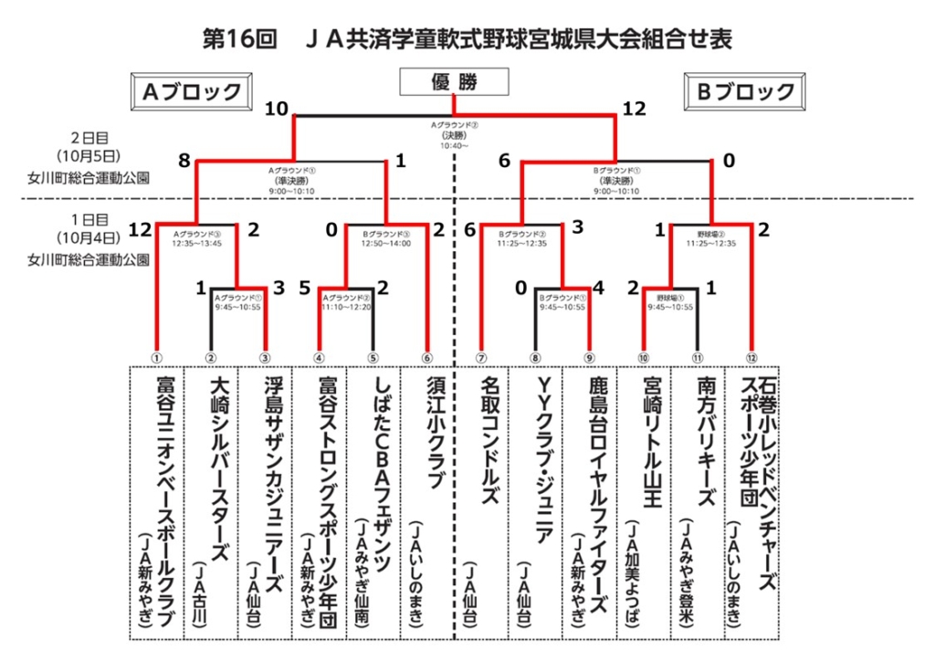 10月4日(土)・5日(日)女川町総合運動公園にて「第16回JA共済学童軟式野球宮城県大会」を開催しました。